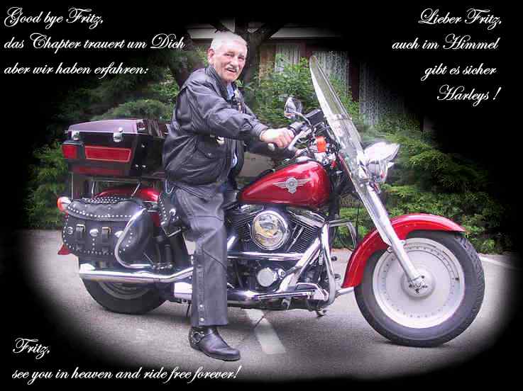 Fritz wird auch in Zukunft, für alle die ihn gekannt haben, mit seiner Harley an unserer Seite und in unseren